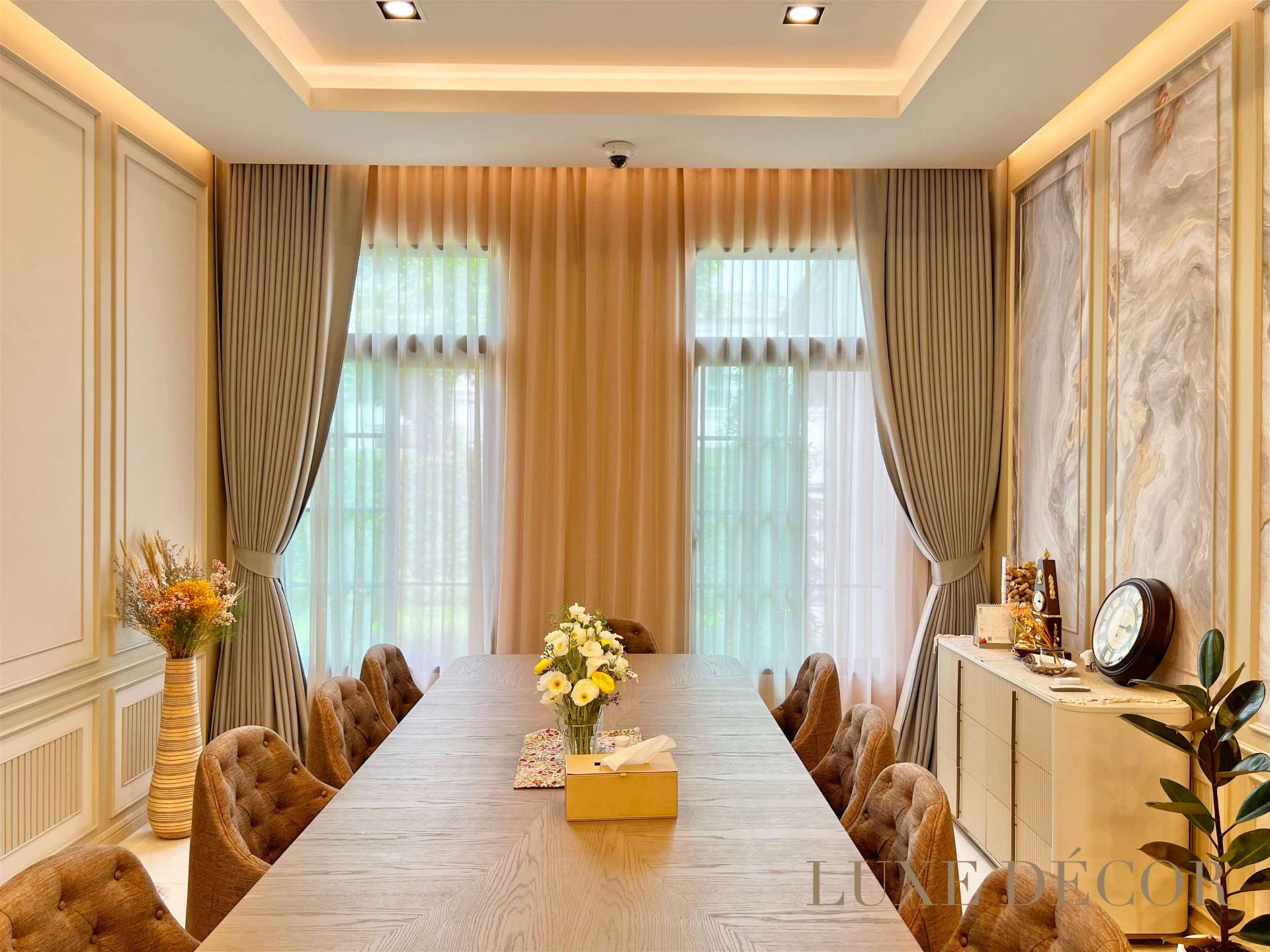 สำหรับคำถามที่ว่า “ทำไมต้องผ้าม่านสั่งตัด” จะเห็นได้ว่าคำตอบไม่ได้อยู่ที่ความสวยงามหรือหรูหราเท่านั้น แต่ยังมอบความใส่ใจในรายละเอียดที่ตอบโจทย์การใช้งานจริง ทั้งในแง่ของความสวยงามและความสะดวกสบาย หากคุณกำลังมองหาผ้าม่าน ที่จะมาเติมเต็มบ้านของคุณให้สมบูรณ์ LUXE DÉCOR พร้อมเป็นพาร์ทเนอร์ที่คุณไว้วางใจ ด้วยประสบการณ์การดูแลลูกค้าหลากหลายโครงการ เราพร้อมเนรมิตผ้าม่านในแบบฉบับของคุณ
